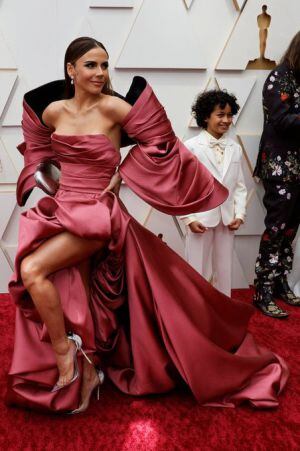 Carolina Gaitán también le apostó al rosa y entró con un vestido que deslumbrará en una presentación de la banda sonora de 'Encanto', película colombiana que obtuvo tres nominaciones en las categorías de Mejor Película Animada, Mejor Banda Sonora Original y Mejor Canción Original con 'Dos Oruguitas'.