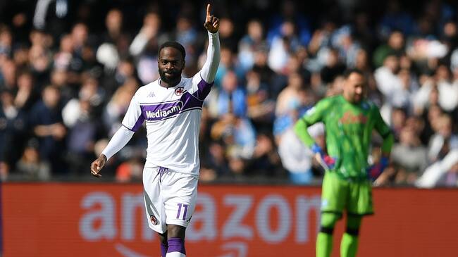 Jonathan Ikoné festeja el tercer gol de la Fiorentina, ante la decepción de David Ospina. / Getty Images / Francesco Pecoraro