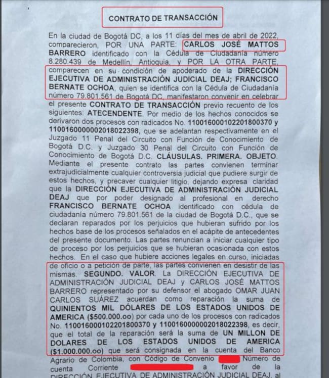 Carlos Mattos y la Rama Judicial acuerdan indemnización por USD 1 millón