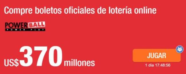 “Sin salir de la comodidad del hogar, y en cuestión de minutos, cualquier colombiano puede ganar el acumulado del Powerball de 370 millones de dólares”.