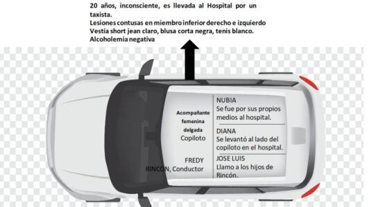 La vicefiscal Mancera indicó que en este caso se han podido recoger 849 evidencias, establecidas en 10 videos tomados de 17 cámaras de seguridad privadas y pública, que registraron cada uno de los puntos donde se movilizó la camioneta. También 13 declaraciones juramentadas, inspecciones al lugar del accidente y 700 fotografías.