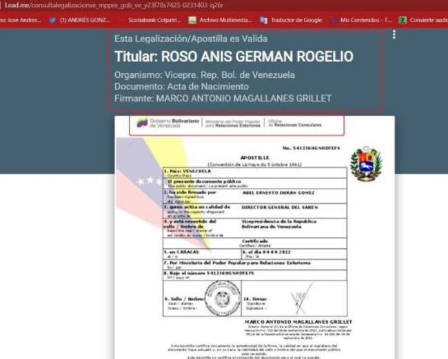 Certificado de acta de nacimiento venezolana del congresista electo Germán Rozo / CARACOL RADIO