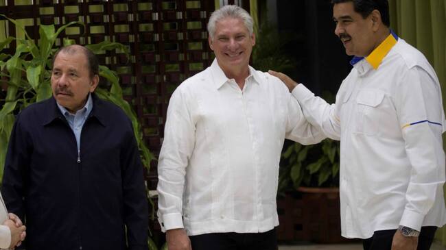 De izquierda a derecha, los presidentes Daniel Ortega (Nicaragua), Miguel Díaz-Canel (Cuba) y Nicolás Maduro (Venezuela). Foto: Getty