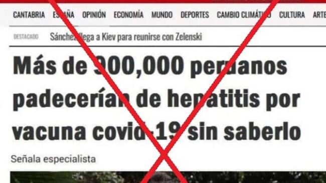 En Perú se desmintió la difusión de una noticia falsa en la que se asegura que 900.000 personas tendrían hepatitis tras vacunarse contra COVID-19.