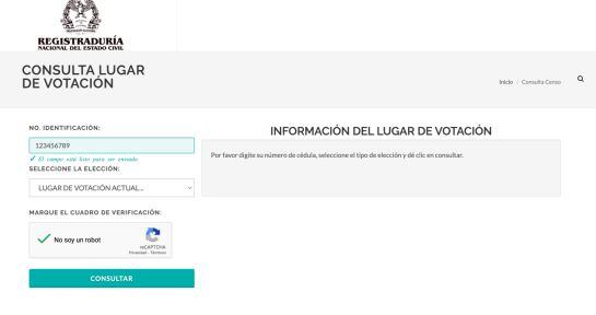 Entra a la página https://www.registraduria.gov.co/ o en Google busque Registraduría, y en el primer resultado encuentra el enlace deseado. En la parte izquierda, bajando un poco, en la página principal; podrá encontrar la opción ‘CONSULTE AQUÍ SU LUGAR DE VOTACIÓN’.