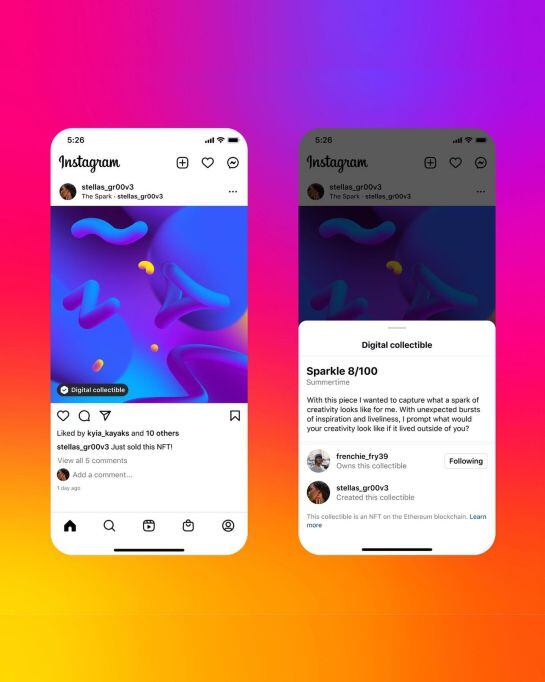 Usuarios podrán compartir sus NFT en perfiles e ‘historias’ y no habrán “tarifas asociadas por publicar o compartir un coleccionable digital”