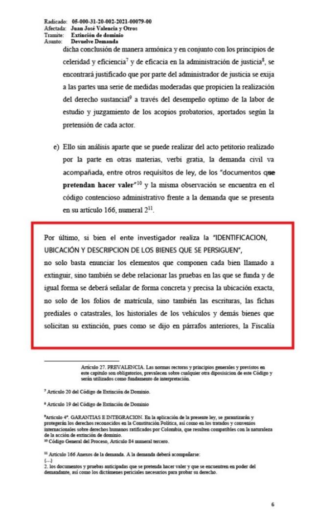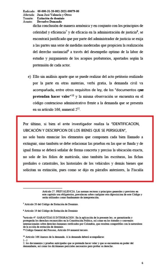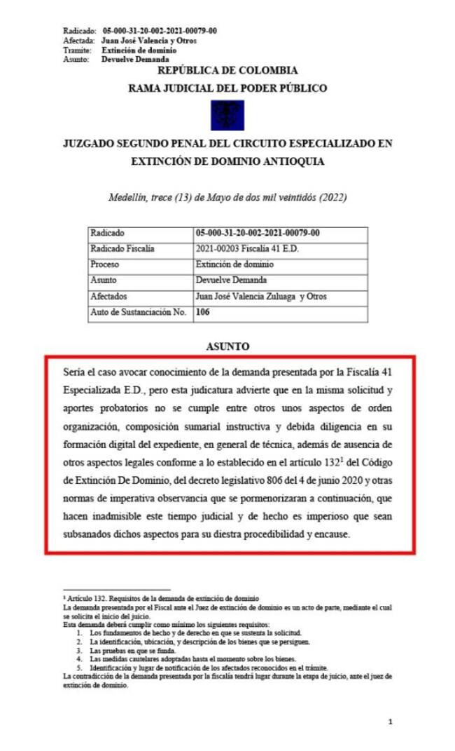 Según el auto del juez, la Fiscalía tiene la posibilidad  de volver a presentar la demanda de extinción de dominio.