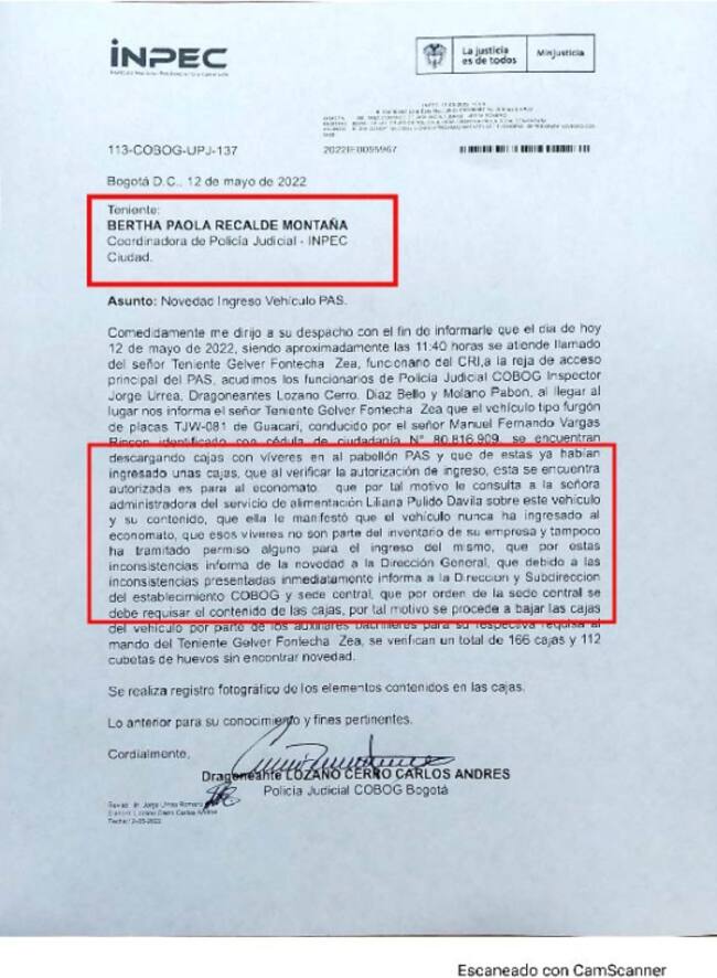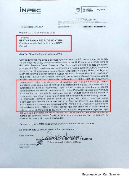 Caracol Radio conoció un documento del INPEC de fecha 12 de mayo de 2022, donde se puso de presente a la coordinadora de Policía judicial en el INPEC las irregularidades con las que pretendían ingresar 116 cajas con ostentosos mercados que incluían langosta, carnes finas, perniles, reconocidas hamburguesas y hasta carne de mico a la cárcel La Picota de Bogotá.