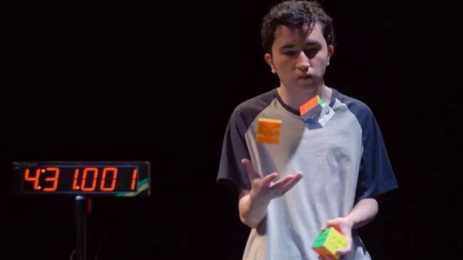El joven colombiano Ángel Alvarado rompió un Récord Guinness tras hacer malabares con tres cubos rubik mientras los armaba