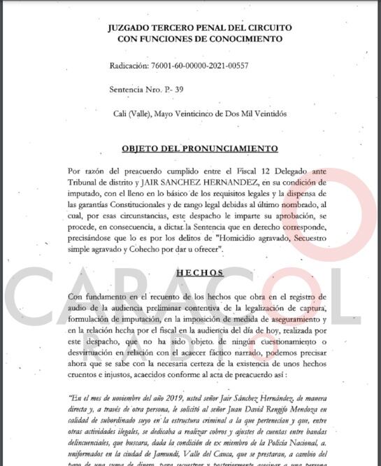 Fallo de condena contra el narco Jair Sánchez Hernández, alias 'Mueble Fino' / CARACOL RADIO