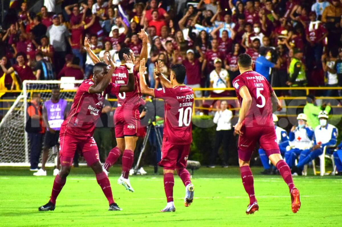 Los jugadores del Tolima festejan el segundo gol ante Nacional.