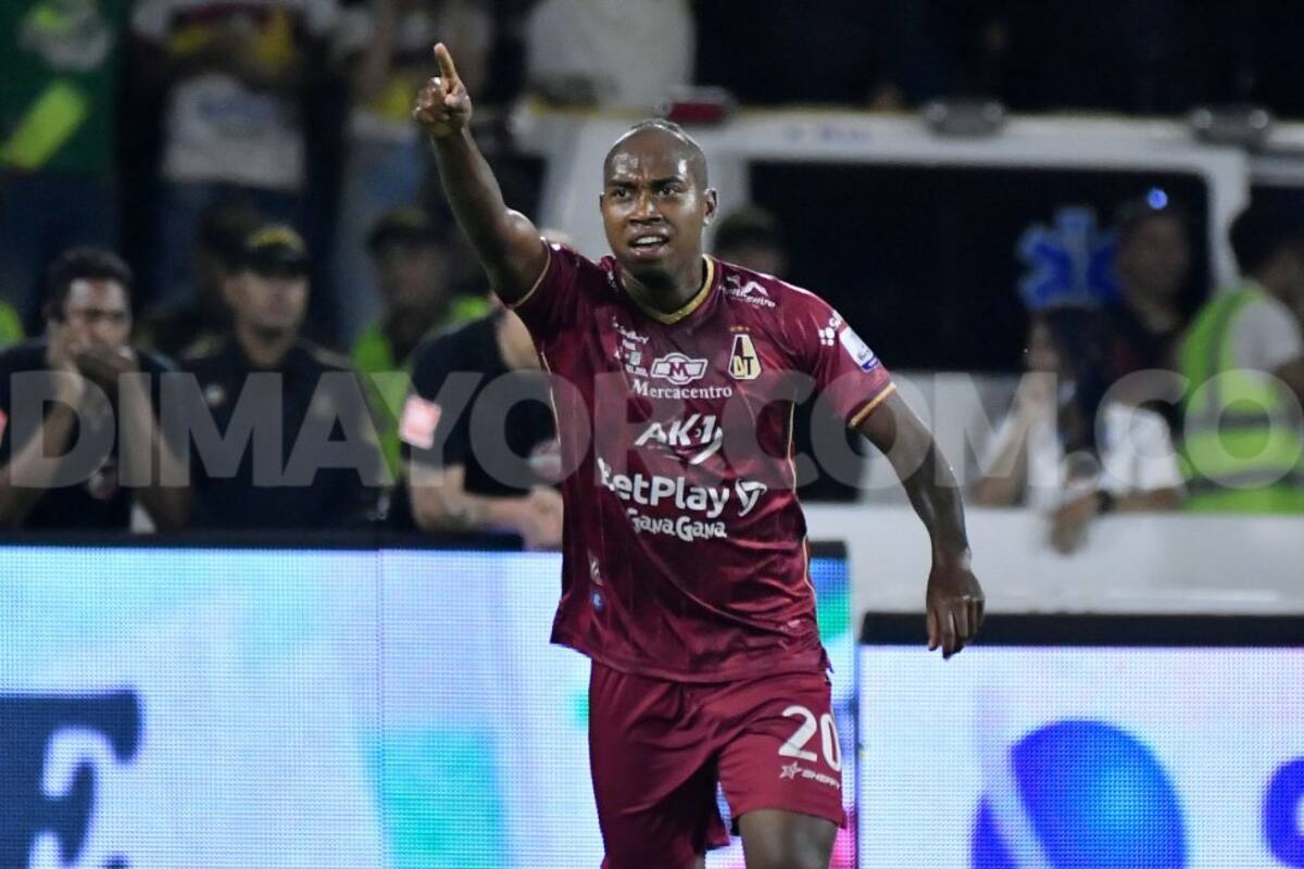 Junior Hernández celebra el primer gol del Tolima.