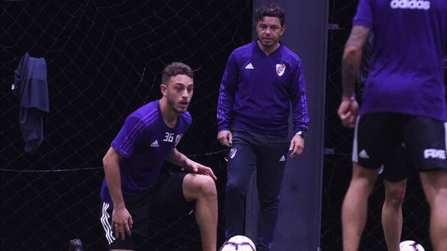 Nahuel y Marcelo Gallardo, durante el paso del lateral por River Plate en 2019. / Getty Images / Diego Alberto Haliasz
