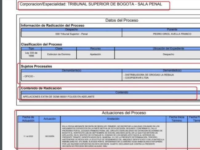 La Sala Penal del Tribunal Superior de Bogotá negó una solicitud de nulidad y, por el contrario, ratificó un fallo del año 2016 que ordena la extinción de dominio de bienes de la reconocida cadena de farmacias Drogas La Rebaja, empresa que perteneció al Cartel de Cali.