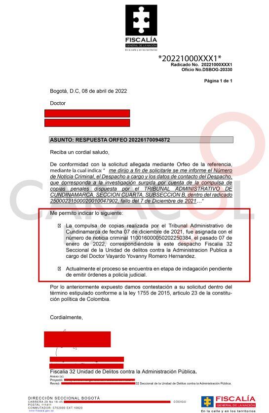 Por eso, el Tribunal Administrativo de Cundinamarca dictó medidas cautelares. Sin embargo, llegó diciembre del 2021 y persistía el incumplimiento. Fue ahí cuando se les abrió un incidente de desacato a ambos y se compulsó copias a la Fiscalía General.