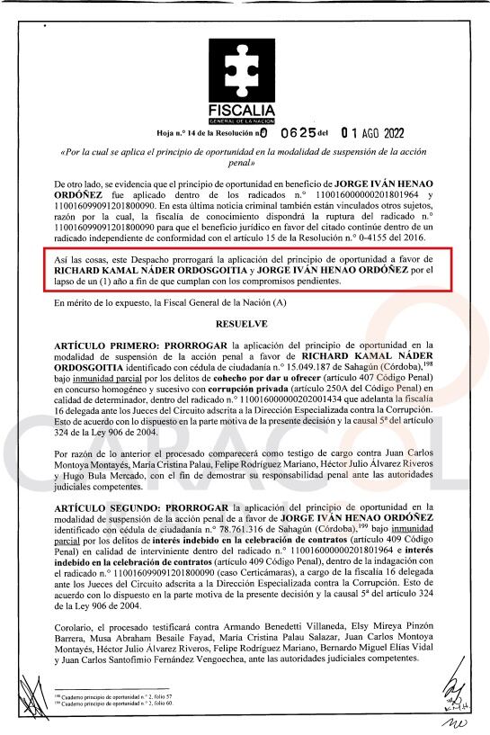 La Fiscalía también extendió el principio de oportunidad a Jorge Iván Henao Ordóñez, el testigo principal de este escándalo de corrupción y quien declarará en contra de: