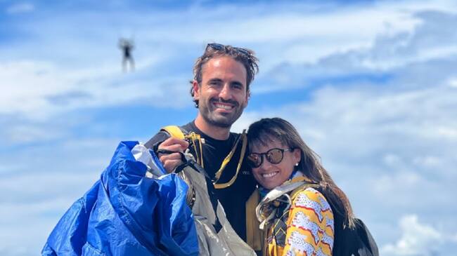 La pareja de paracaidistas bogotanos Nicolás Rubio y Ana Aponte que busca establecer un nuevo récord mundial. / Imagen suministrada