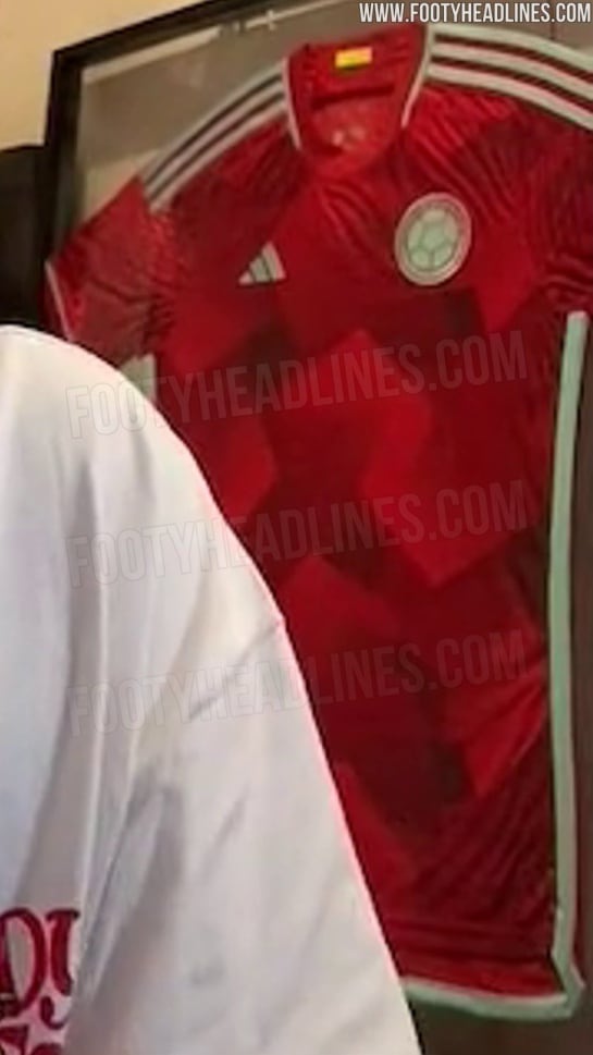"La camiseta de visitante de Adidas Colombia 2022 presenta un diseño interesante, que combina una base roja con un patrón geométrico abstracto, mientras que todos los logotipos aparecen en el mismo color", agrega Footy Headlines sobre la prenda.