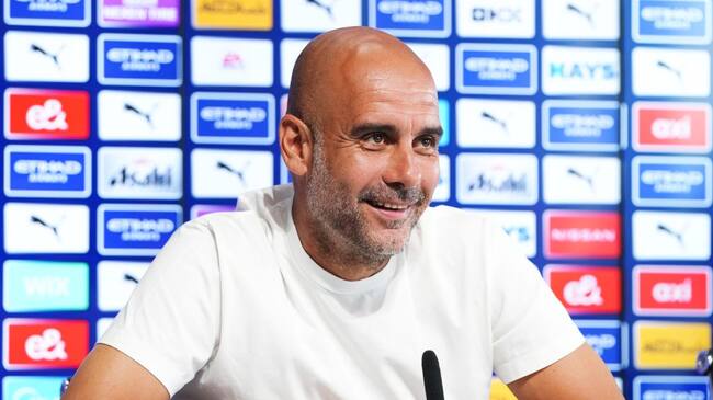 Pep Guardiola, entrenador del Manchester City, en conferencia de prensa, / Getty Images / Matt McNulty