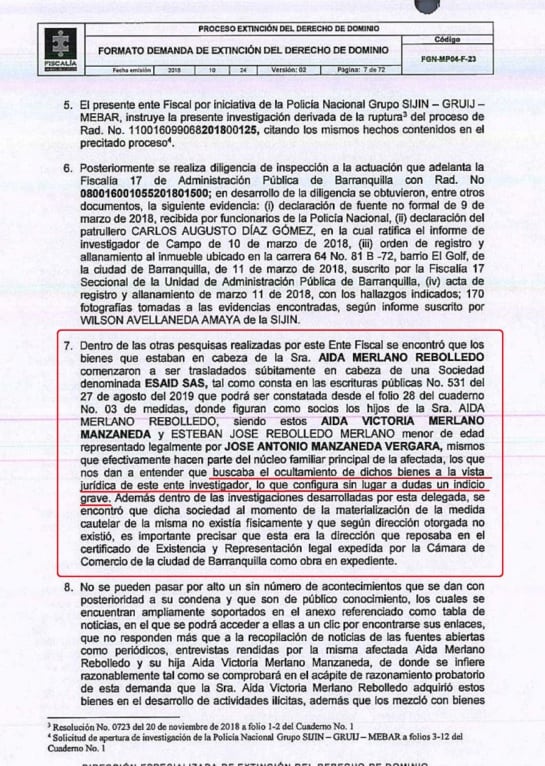 El expediente de extinción de dominio en contra de Aida Victoria Merlano