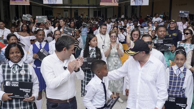 El presidente Gustavo Petro estuvo presente en el acto de entrega de 1000 computadores para niños en el Archipiélago de San Andrés. También estuvo, el ministro de las TIC, Mauricio Lizcano.