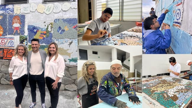 Un mosaico construido con las manos de muchos de los integrantes del Centro de Educación y de inclusión social - CEDER decoran sus paredes y cuentan la historia de Manizales.