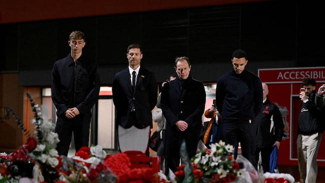 El DT Xabi Alonso y Trent Alexander-Arnold, ambos exjugadores del Liverpool, visitaron el altar del portugués.