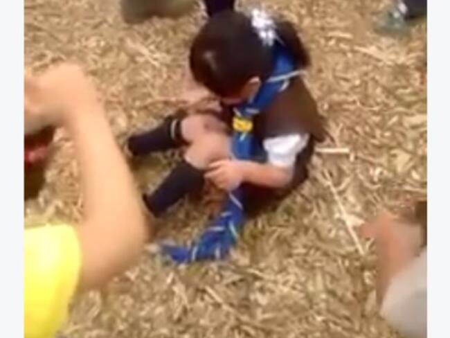 En el video se evidencia el matoneo al que es sometida la pequeña quien pide a gritos que no le derramen encima una bebida.
