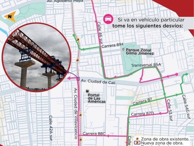 La calzada rápida de la Carrera 68 con av. Primero de Mayo cerrará aproximadamente durante un año.