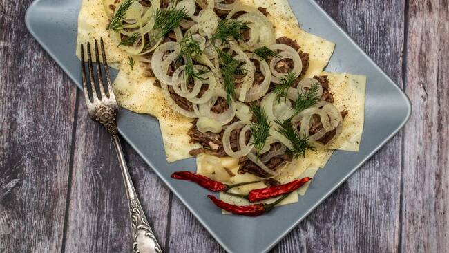 El plato estrella es el "beshbarmak", que significa "cinco dedos", y cuyo nombre hace honor a la tradición ancestral de comerlo con la mano.