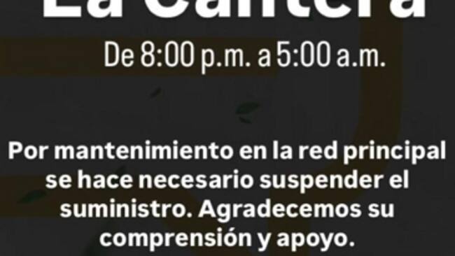 La suspensión del servicio obedece a trabajos de cambio de redes en el sector.