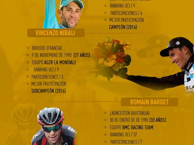 En la lista también destacan el español Alejandro Valverde y los italianos Fabio Aru y Vincenzo Nibali.