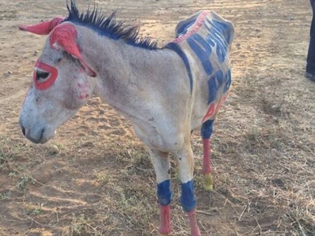 El autor material del irrespeto a los animales escribió al costado del asno un letrero que dice Pablo Parra, alcalde