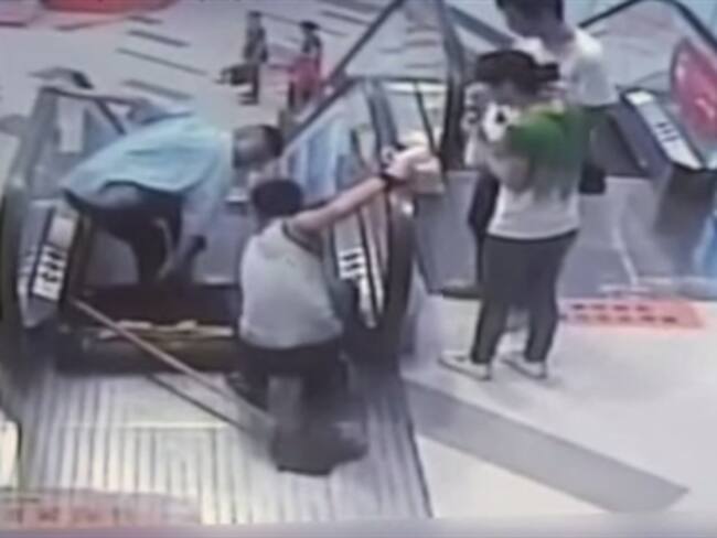El video que circula por YouTube muestra como una de las piernas de un empleado de un centro comercial queda atrapada.