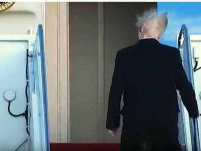 Un video grabado cuando el presidente de los Estados Unidos sube al Air Force One ha revelado la clava que esconde debajo de su pelo rubio.