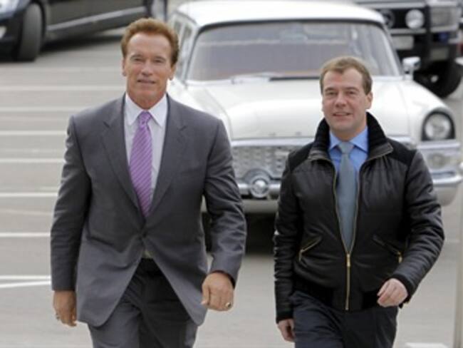 Con el acento austríaco que le caracteriza, un risueño Schwarzenegger recordó en las afueras de Moscú al jefe del Kremlin En California te dije Volveré , y aquí estoy .