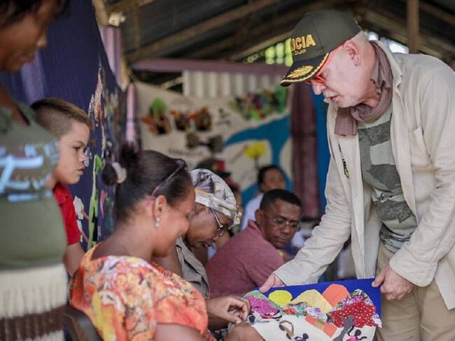 El reconocido diseñador de modas momposino conoció los telos tejidos de paz de las tejedoras de Mampuján en la reciente Vitrina de Anatos