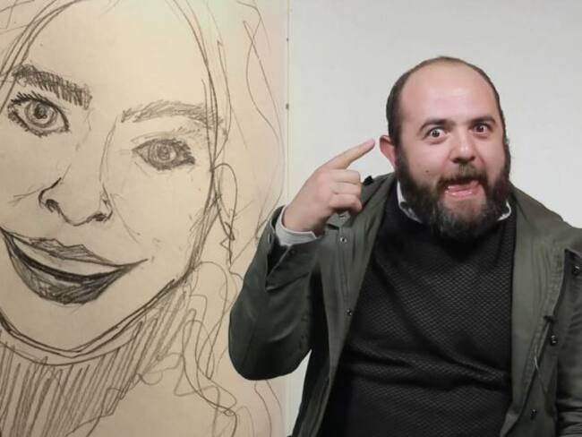 Santiago Rivas estrena sus marcadores acuarelables para plasmar dibujos desconocidos y con su lápiz, regala un retrato del cantante Alejandro González.