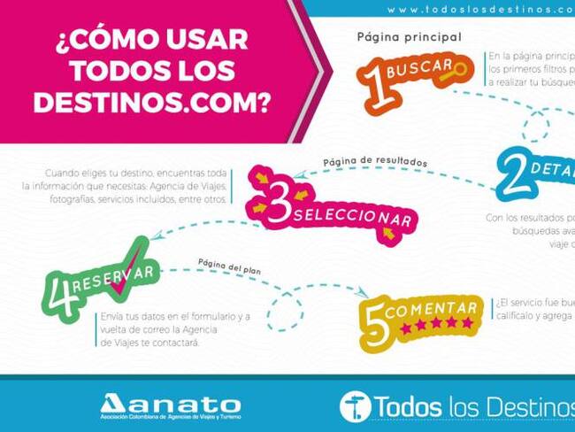 Esta plataforma está dirigida a los viajeros que buscan planear sus vacaciones al alcance de su mano y funciona para destinos tanto en Colombia como en el mundo entero. Permite conocer las condiciones, precios y establecer contacto con la empresa que ofrece los servicios.